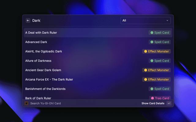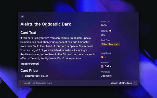 Find info on Yu-Gi-Oh TCG cards.