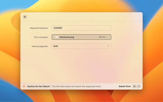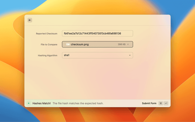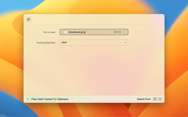 This Raycast extension allows you to check the checksum of a file. Simply enter the file path and the extension will calculate its checksum and compare it to a provided value. This can be useful for verifying the integrity of downloaded files or ensuring that a file has not been tampered with