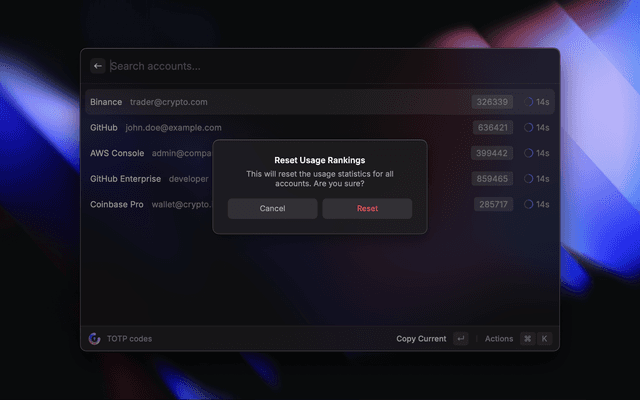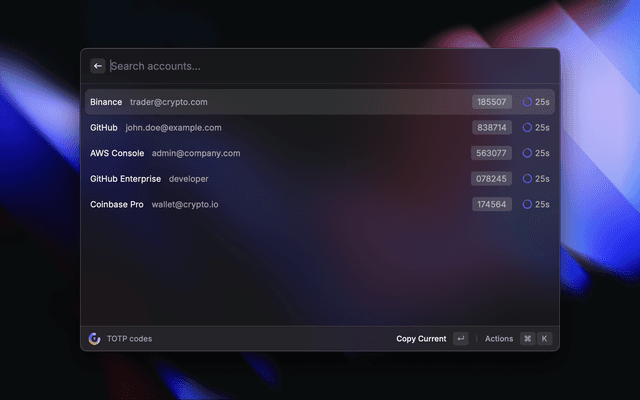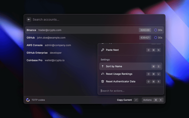 • Local Database mode: The encryption key is stored locally in Raycast's secure storage. Your TOTP secrets are decrypted only when the extension is active.