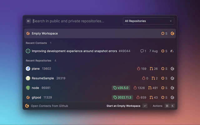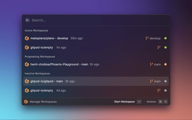 https://github.com/gitpod-samples/Gitpod-Raycast-Extension/assets/72302948/73e39949-a2f2-46a1-8604-d5f3917d1133