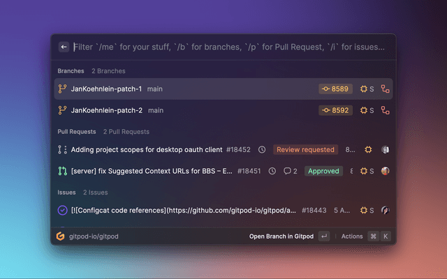 https://github.com/gitpod-samples/Gitpod-Raycast-Extension/assets/72302948/5cb4887f-b6b2-4a55-941c-ea77706ec8a4