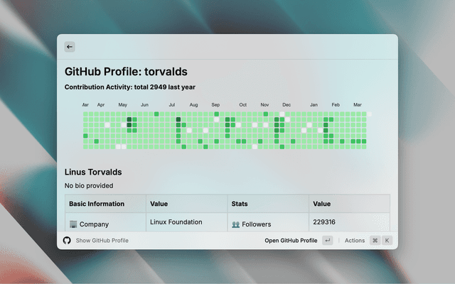 View GitHub user profiles directly from Raycast. π¦