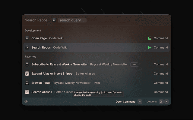 Raycast extension for Code Wiki.