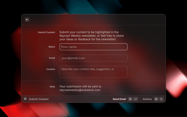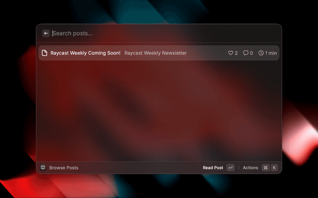 Browse and interact with the Raycast Weekly Newsletter directly from Raycast.