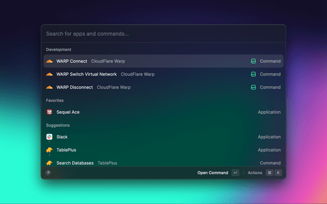 This extension allows you to manage the Cloudflare WARP application on your Mac.