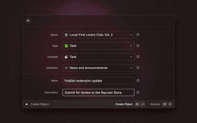 • Interact: Press Enter to view the object in Raycast or Command+Enter to open it in Anytype.