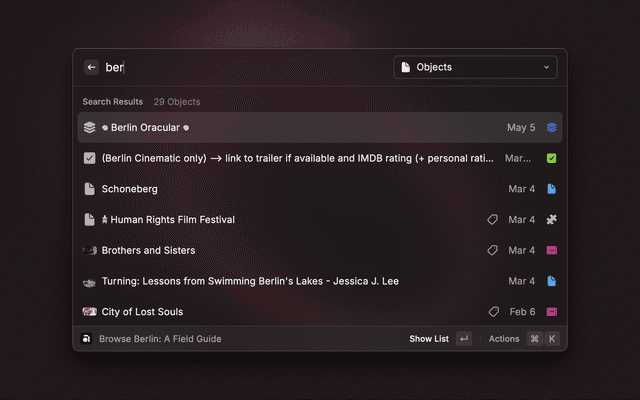• Interact: Press Enter to view an object in Raycast or Command+Enter to open it in Anytype.