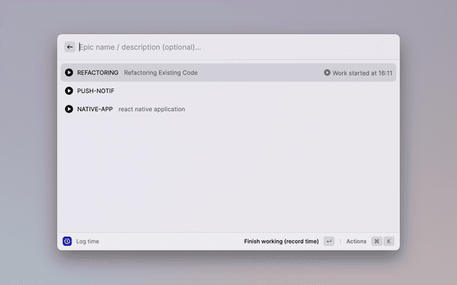 1. Register the names of the epics or activities you are working on. To add a new epic, press ⌘ + N.