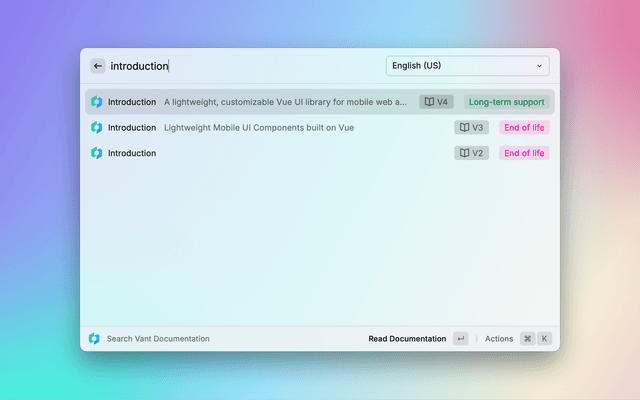 Search Vant UI library documentation in Raycast.