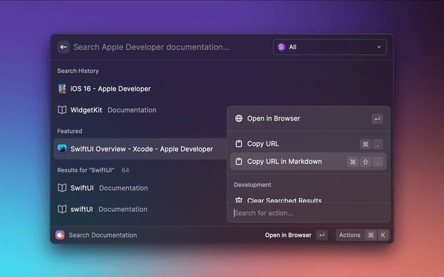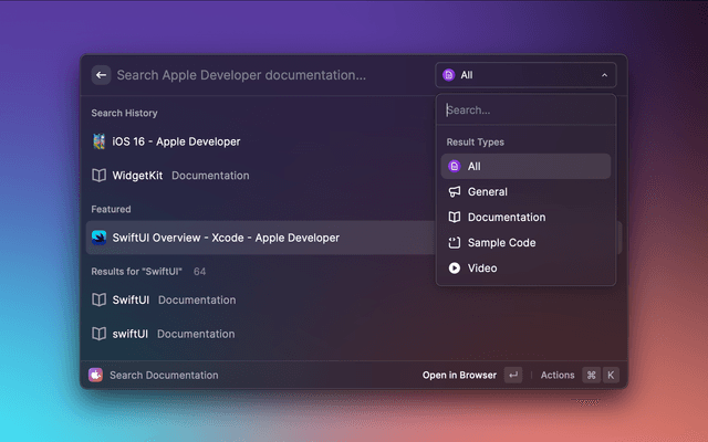 Search from the Apple Developer documentations