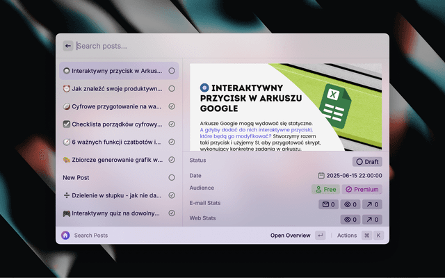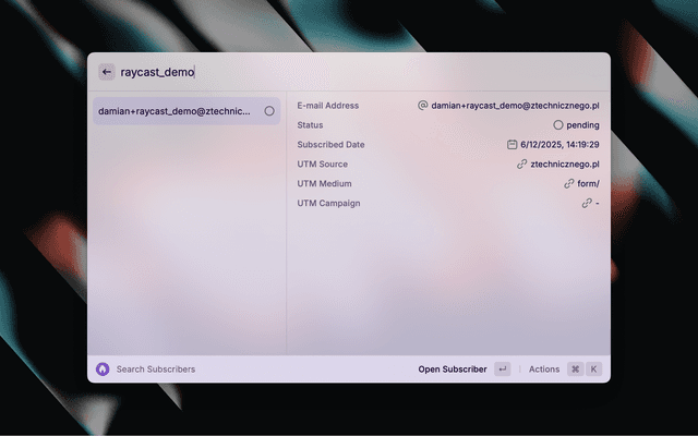 Integrate your Beehiiv publication with Raycast. Search posts & subscribers, drill-down into detailed analytics, copy links, refresh stats, and keep an eye on the latest campaigns – all without leaving your keyboard.