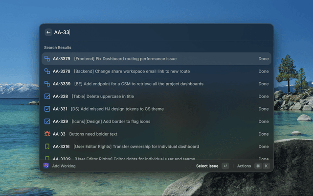 - Add Worklog: Quickly log work hours to any issue with flexible duration formats (1h, 1h30m, 2h)