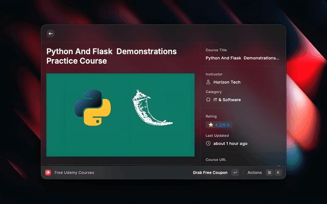 Access thousands of premium Udemy courses for FREE with our verified coupon codes. Updated hourly with the latest deals in programming, design, business, marketing, and more.
