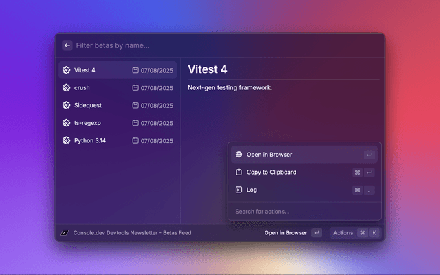 An extension to discover the best tools and beta releases for developers (via console.dev)