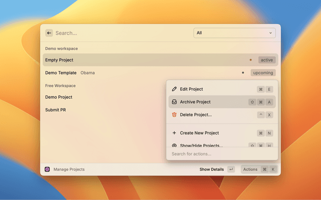 This will show you all the projects you have access to. If you have the appropriate permissions, you can create, rename, delete, archive, and restore a client.
