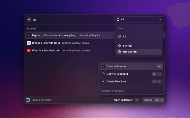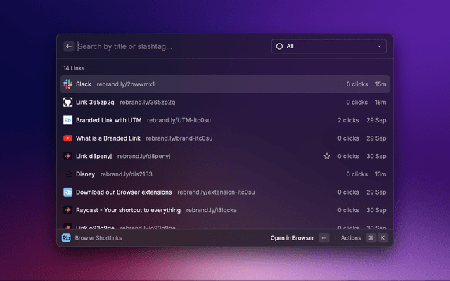 Browse Rebrandly shortlinks on Raycast.