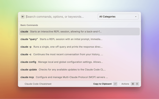 A comprehensive, interactive cheatsheet for the Claude Code CLI. Instantly access the latest commands, options, and unique thinking keywords to supercharge your development workflow.