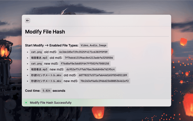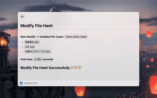 Batch modify the hash of media files, which can be simply used for uploading online disk to prevent censorship. This is a Raycast extension of modify_videos_md5.