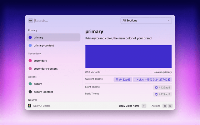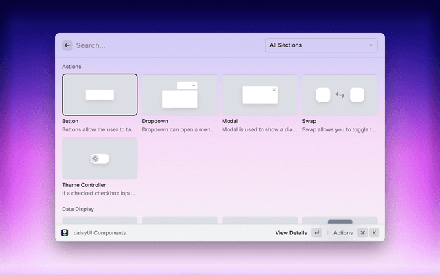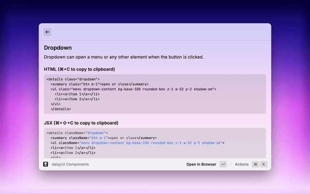 Access the daisyUI reference material from Raycast. All references are from the v5 beta!