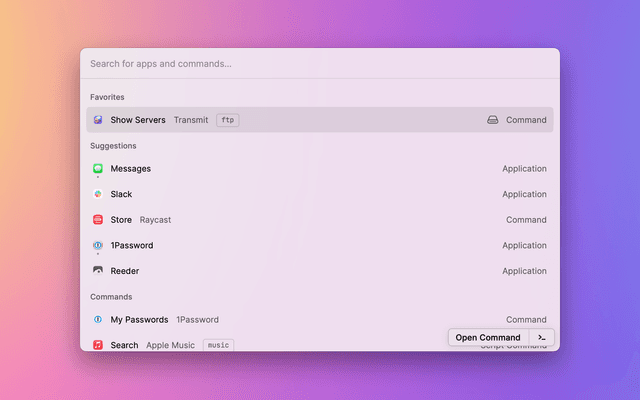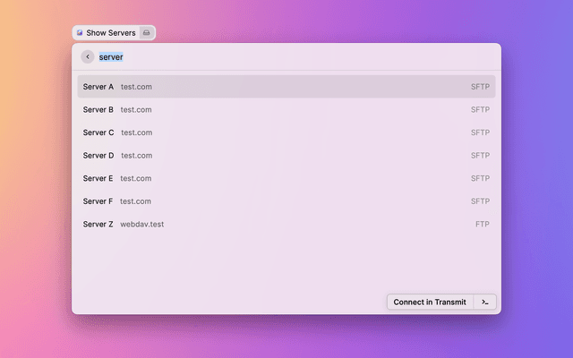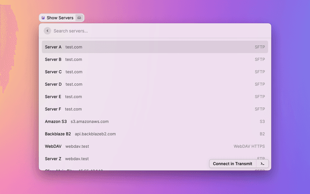 Displays a list of Transmit favorites for quick connecting outside of the app.