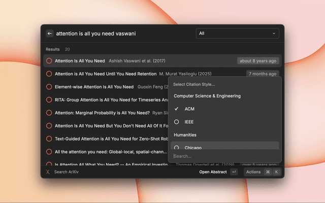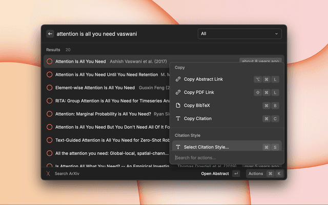 1. Open Raycast and search for "Search ArXiv"
