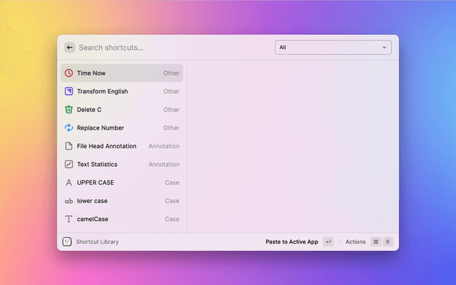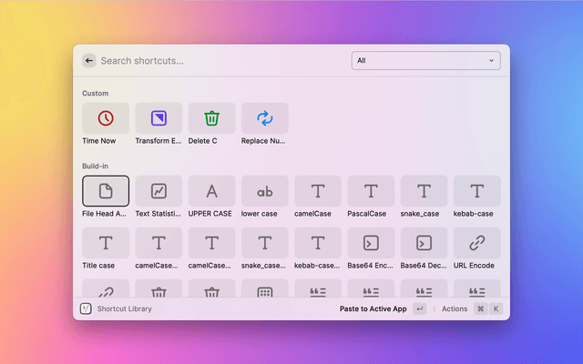 Use Text Shortcuts to handle text from the selection or clipboard