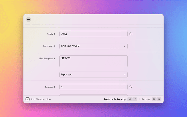 Combine transformation actions to create powerful automations for your text.