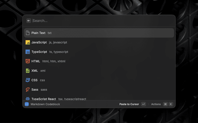 2. select the language you want to use for the codeblock and press cmd + enter (⌘⏎)