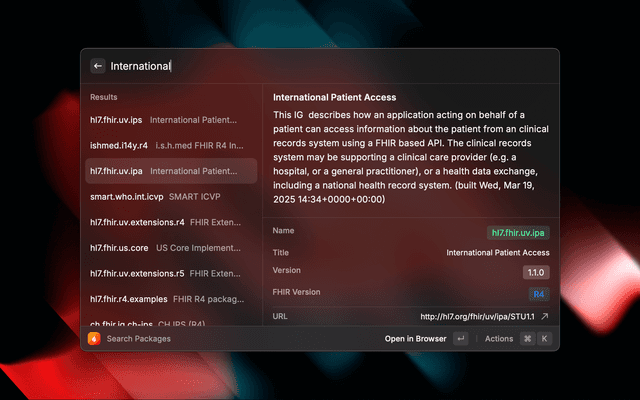 • 📦 FHIR Package Management - Search, discover, and pin FHIR implementation guides and packages from the official registry