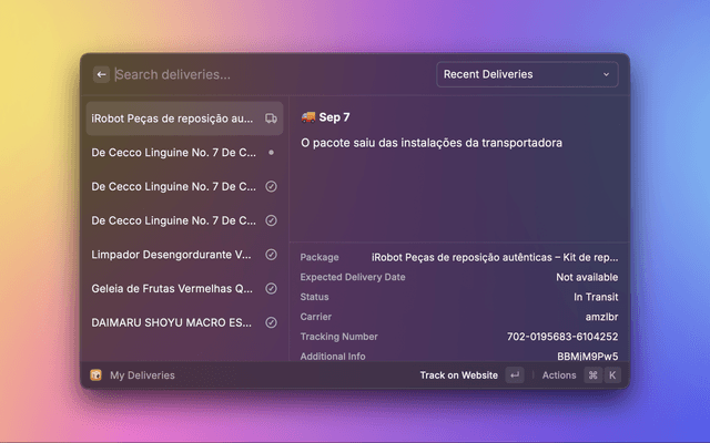 This Raycast extension allows Parcel app users to view their upcoming and active deliveries directly within Raycast, as well as add new deliveries to track.