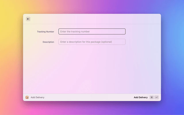 Add a new delivery to track in Parcel using a form interface. You can enter: