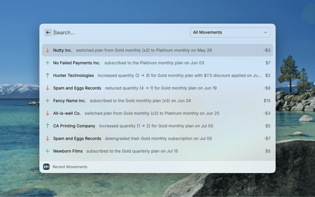 Stay on top of recent subscription movements such as new signups, upgrades, and cancellations.