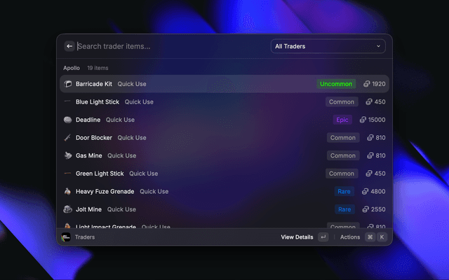 A Raycast extension for Arc Raiders that lets you quickly search items, quests, enemies, events, and more.