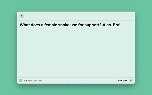 A Raycast extension that delivers random dad jokes to brighten your day. Perfect for when you need a quick laugh or want to share some wholesome humor with your team.