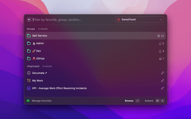 • Manage Favorites: View and manage your favorite items and groups in ServiceNow.