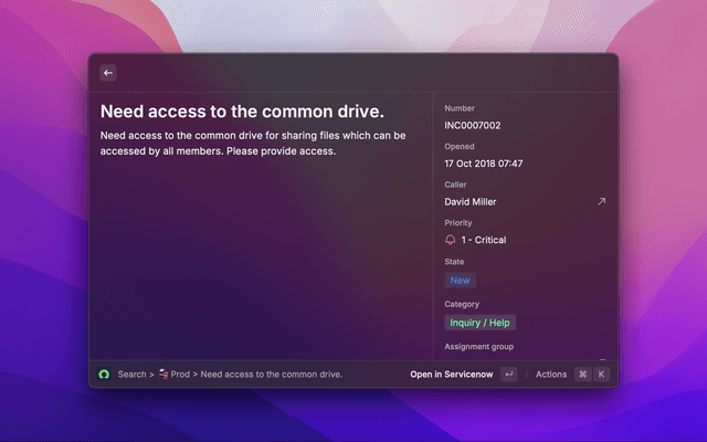 • Efficient Navigation: Open specific ServiceNow instances or records directly from the command window.