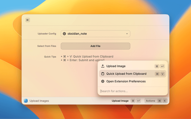 • Multi-Config Support: Switch between different uploader configurations easily within Raycast.