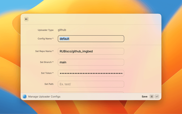 • Switch Config: Use the dropdown menu to select the uploader configuration. The config will be remember (in Raycast LocalStorage without directly changing your local config file) once you upload some images with it.