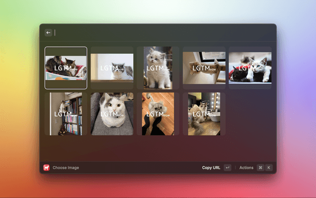 This is a Raycast extension that allows you to easily select and paste cat images from LGTMeow (https://lgtmeow.com/) as LGTM images in Markdown format.