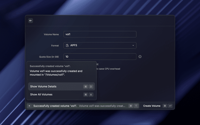 Raycast extension to create, list and delete Apple File System (APFS) disk volumes