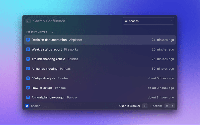 Quickly navigate, create and search Confluence through Raycast.