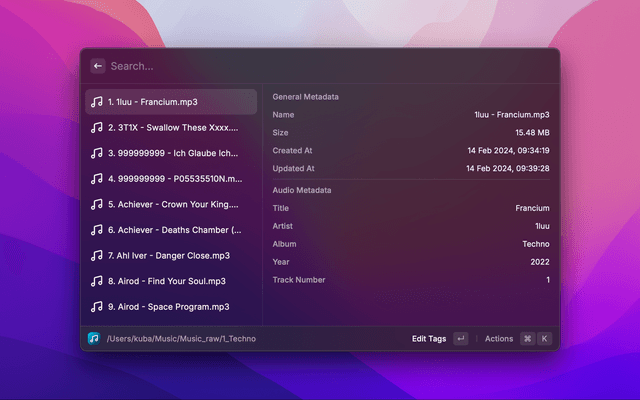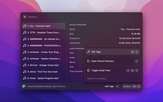 Manage the ID3 tags of audio files directly in Raycast!
