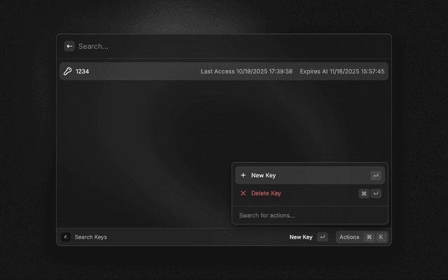 b. Click "New Key +", Enter name of your choice e.g. "Raycast", Click "Create API Key"