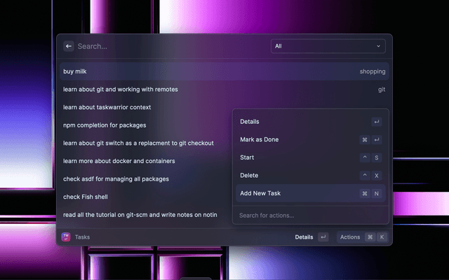 Taskwarrior integration to Raycast.